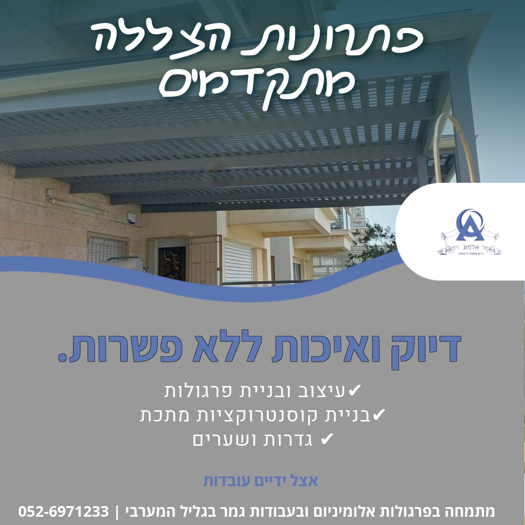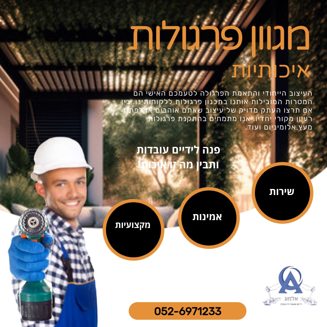 למה אנחנו? כי אנחנו מאמינים שכל לקוח הוא ייחודי, וכל פרויקט הוא הזדמנות להפגין יצירתיות, חדשנות ומסירות. הפרגולות שאנחנו בונים לא רק עומדות באיכות הגבוהה ביותר – הן גם מביאות איתן מראה אלגנטי שמשדרג כל מרחב.