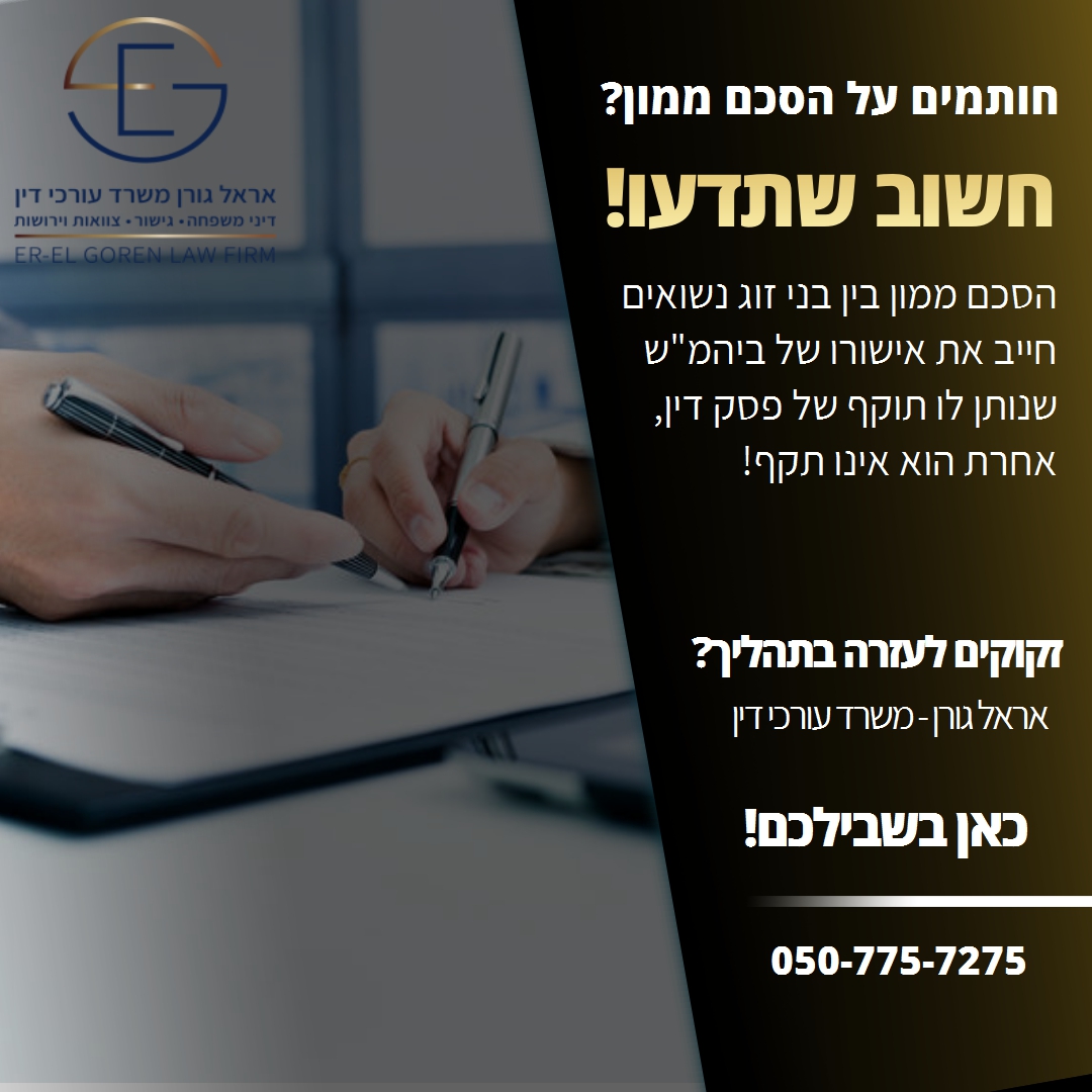 משרדינו מתמחה בדיני משפחה ובתוכם כל סוגי ההסכמים החל מגירושין וגישור ועד צוואות וירושות.
