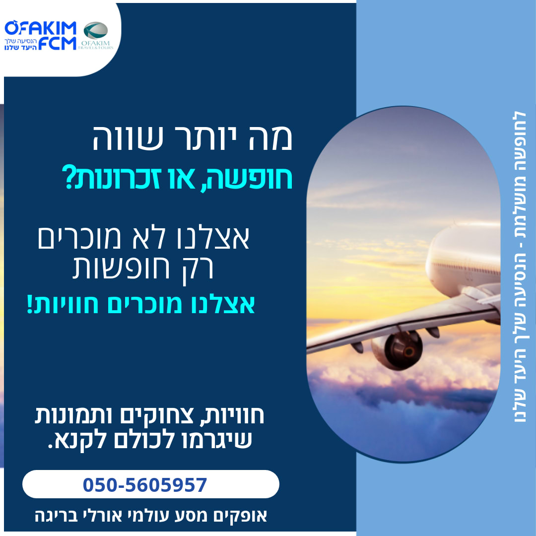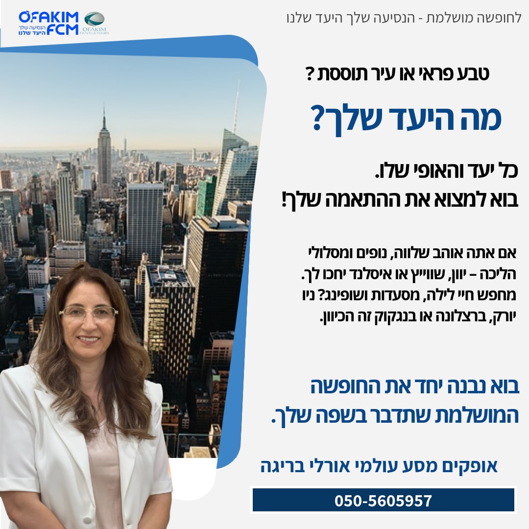 ברוכים הבאים למשרד הנסיעות שלך עם ליווי אישי, מקצועי ובטוח נעים מאוד שמי אורלי בריגה, אני עצמאית כבר מעל 12 שנה, בעלת משרד נסיעות שמעניק שירותי תיירות מקיפים למגזר העסקי והפרטי. |