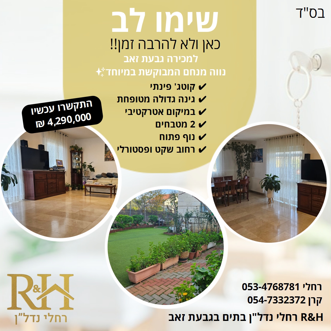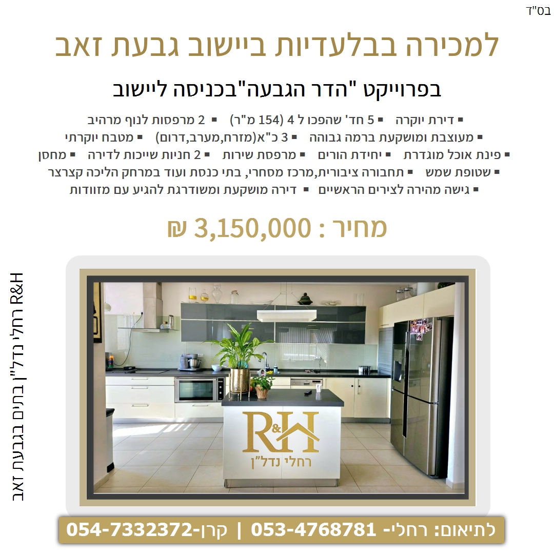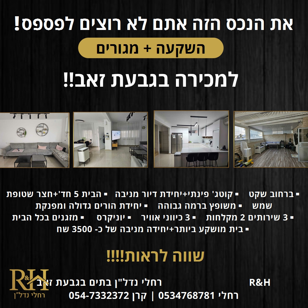 בס"ד רחלי נדל"ן - המומחיות שלכם בגבעה יעוץ נדל"ן לשיווק נכסים בגבעת זאב והסביבה!