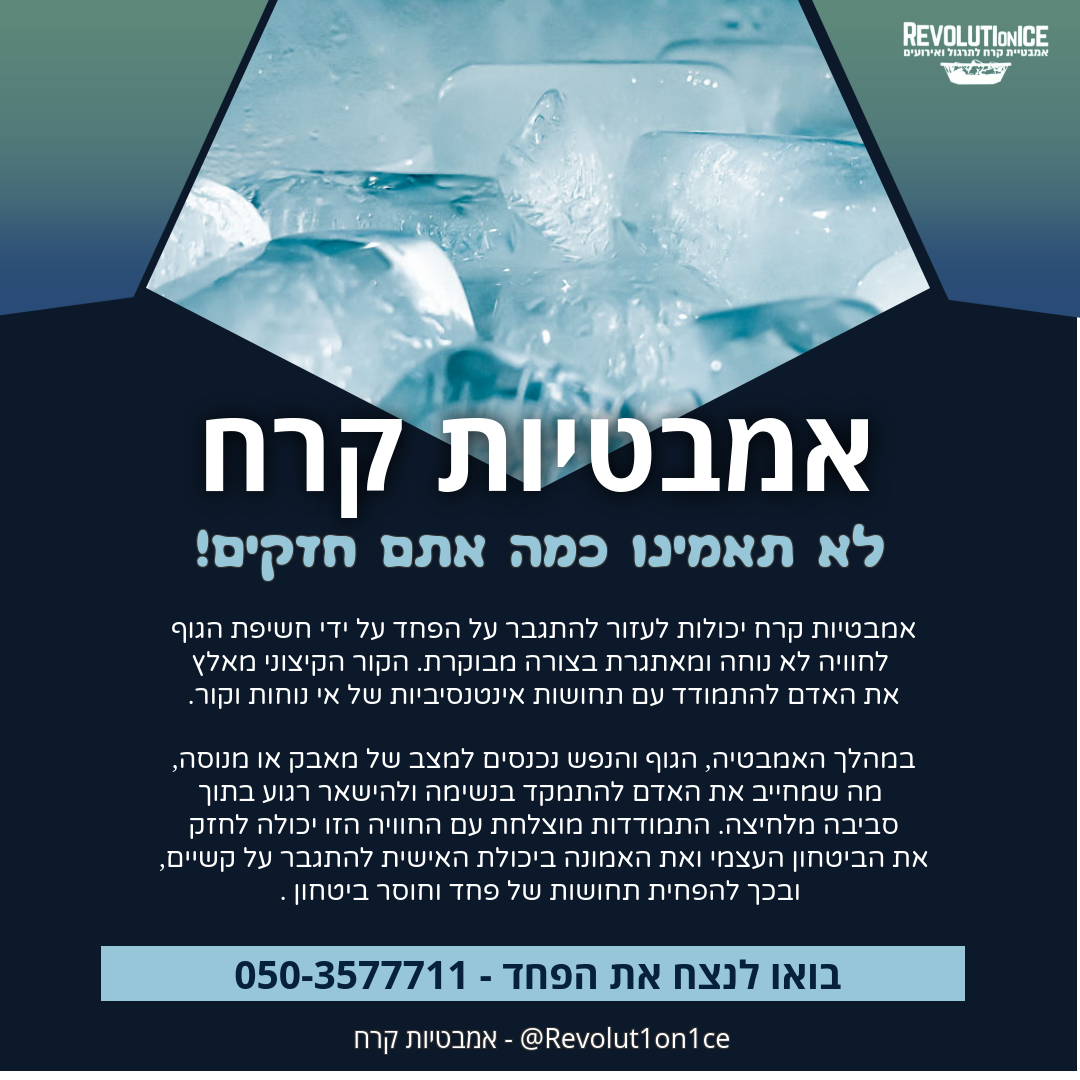אמבטיות קרח הן כלי עוצמתי לאימון מנטלי בזמן קצר, שמעניק תעצומות נפש והבנה כיצד להתמודד במצבים מאתגרים. בנוסף, הן מחזקות את המערכת החיסונית, ממריצות את מחזור הדם ומשפרות את חילוף החומרים בגוף. התחושות שלאחר הטבילה באמבטיית קרח הן תחושת ניצחון ומסוגלות, שמזכירות לנו כמה אנחנו עוצמתיים ומשחררות אותנו מהסיפורים המגבילים שאנחנו מספרים לעצמנו. לאמבטיות קרח יתרונות רבים נוספים, והן מציעות חווית התחברות לגוף ולנפש שמעצימה את יכולת ההתמודדות שלנו עם אתגרי היומיום.