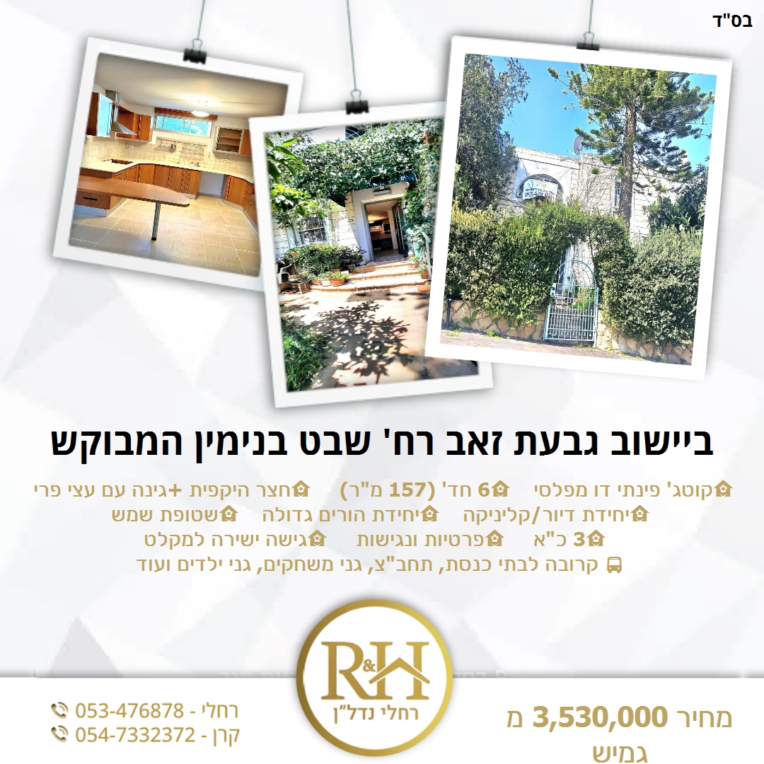 🏠 למכירה בגבעת זאב רח' שבט בנימין המבוקש - R&H רחלי נדל"ן בתים בגבעת זאב