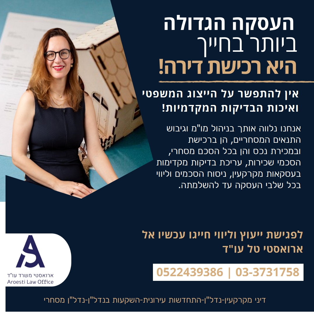 העסקה הגדולה ביותר בחייך היא רכישת דירה. - ארואסטי טל עו"ד כאן בשביל ללוות אותך בתהליך!