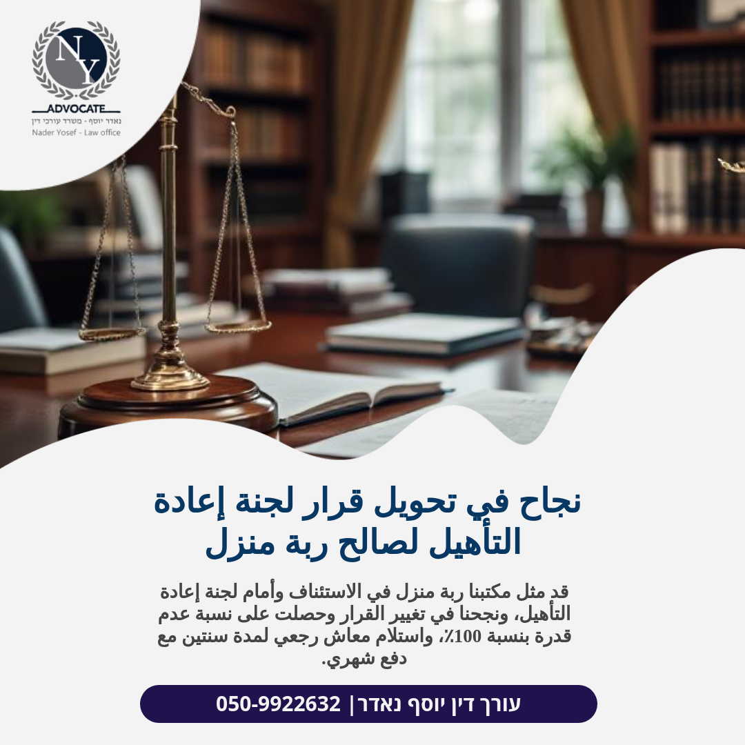نجاح في تحويل قرار لجنة إعادة التأهيل لصالح ربة منزل